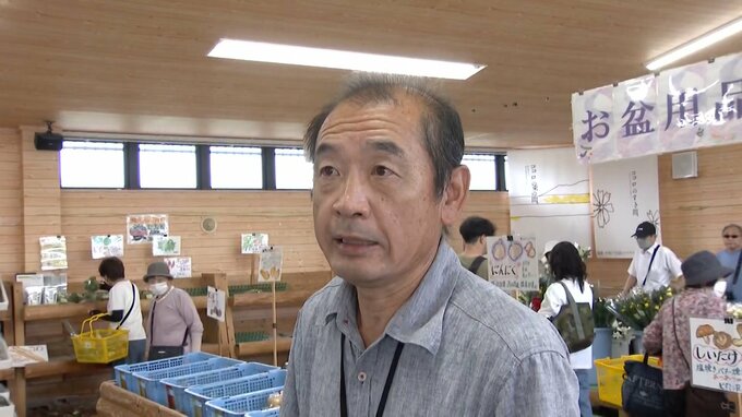 「露地野菜、これはもろに影響してます。もうナスなんかもそうなんですよね。今日は、まぁまぁ出て、農家の皆さん、一生懸命頑張ってですね、なんとかやっぱり盆に合わせてですね、収穫はしてもらっているんですけども、今それでも少ないですね」
