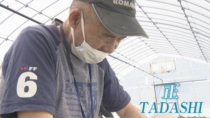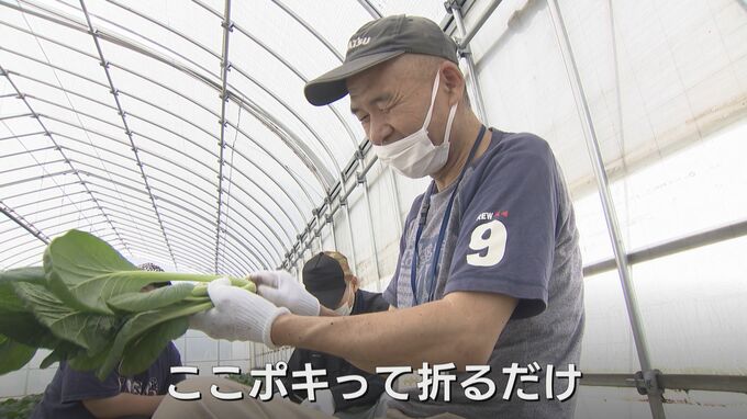 この作品を描いたのは、正(ただし)さんです。この日は、南砺市の農場で小松菜の収穫作業をしていました。