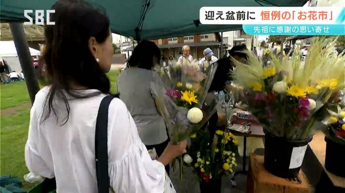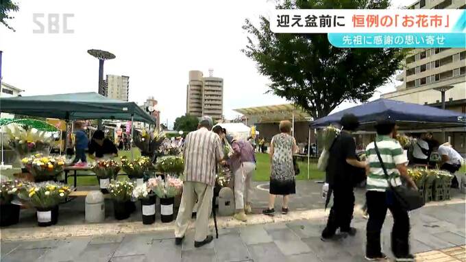 13日の迎え盆を前に、長野市の中心市街地では恒例のお花市が開かれています。
