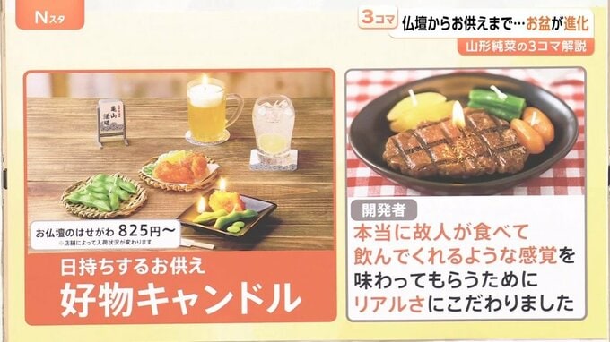 キャンドルの開発者は「本当に故人が食べて飲んでくれるような感覚を味わってもらうために、リアルさにこだわりました」と話していました。