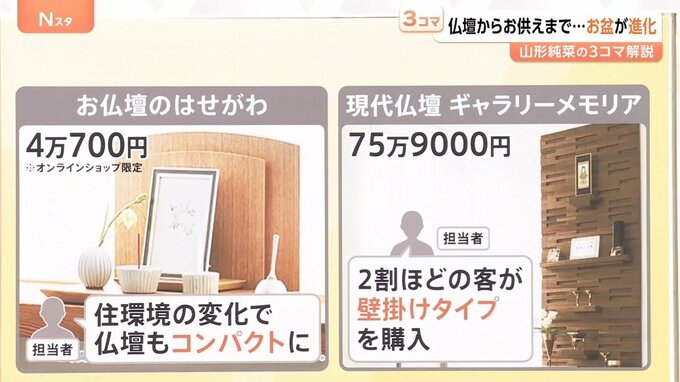また、現代仏壇 ギャラリーメモリアの担当者いわく「2割ほどの客が壁掛けタイプの仏壇を購入している」とのことでした。