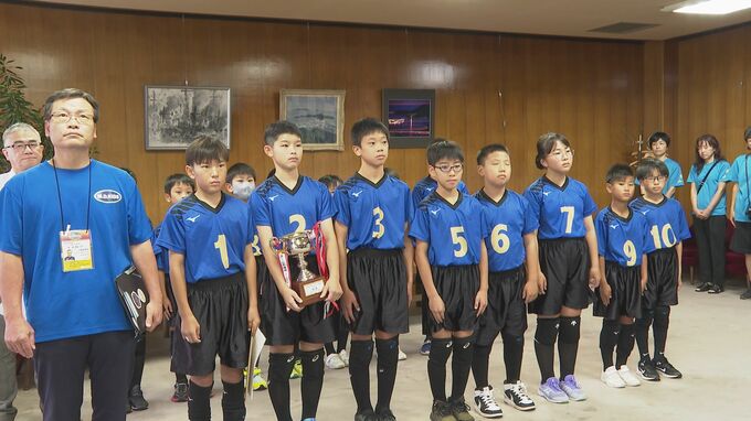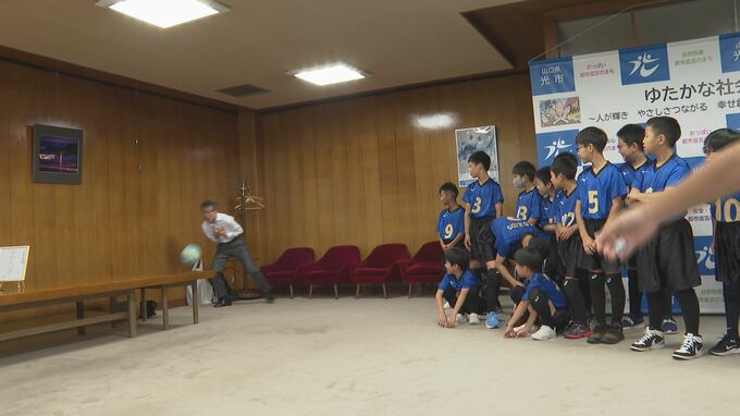 夏の全国小学生ドッジボール選手権大会に山口県代表として出場する光市のクラブチームが12日、市長に健闘を誓いました。