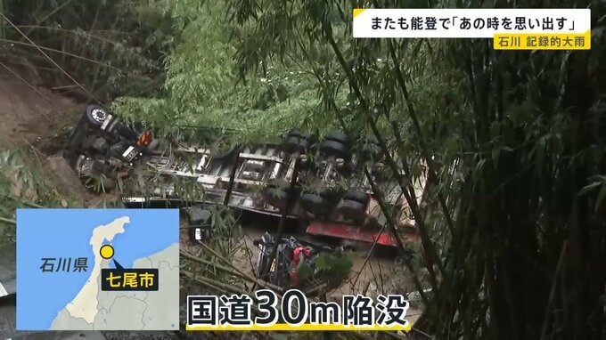 石川県内は土砂崩れも相次ぎました。七尾市では国道が長さおよそ30メートルに渡って陥没し、車3台が崖下に転落。男性3人が重軽傷を負いました。
