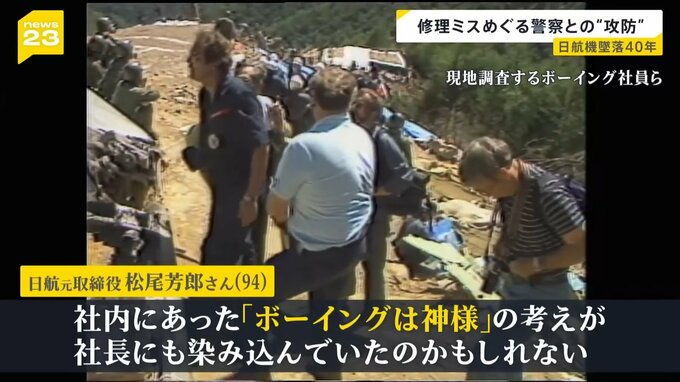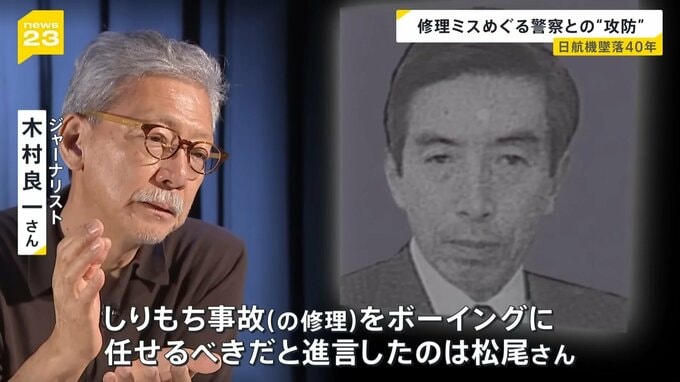 「(松尾さんは)日航とボーイング社のパイプ役。しりもち事故(の修理)をボーイングに任せるべきだと進言したのは松尾さん。事故機に関して、日本で一番、世界で一番知っている」