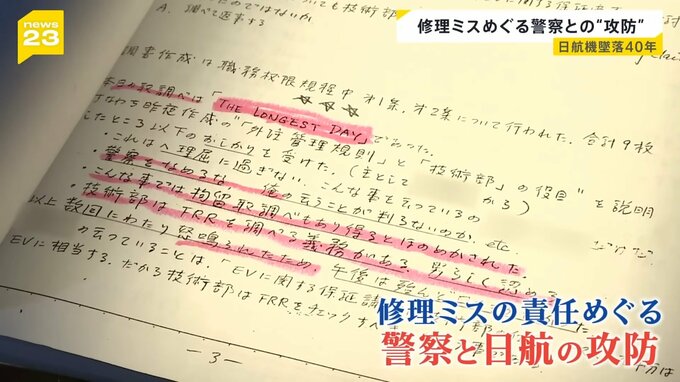 そこには、修理ミスの責任をめぐる警察と日航の攻防が記されていました。