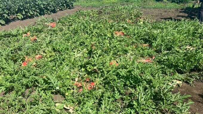 13日早朝、北海道南部の江差町で、民家近くの畑にあったスイカが大量に食べられているのが見つかりました。近くにはクマのものとみられる足跡があり、警察が注意を呼びかけています。