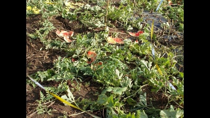 13日午前5時15分ごろ、江差町柳崎町に住む60代の男性が、自宅に隣接する畑で作業をしようと外に出たところ、スイカが食べられているのを見つけ、警察に通報しました。