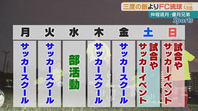 月曜日から金曜日まで、部活動の他にもサッカースクールに通い、土日は試合やサッカーイベントに参加するという毎日。この日は、FC琉球不動の「10番」富所悠選手が指導するスクールでの練習日でした。