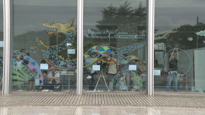 ぬりえアートは特別展「躍動するアジア陶磁」が開かれている9月23日まで展示されます。
