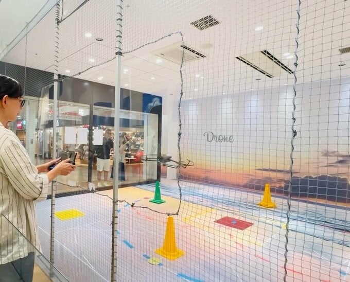 続けて、「航空法や点検記録の書き方、覚えなくてはならないことが意外と多い」としながらも、「スクールは室内で快適です!」と、実際に、ドローン操縦を習っている姿も動画でアップしました。