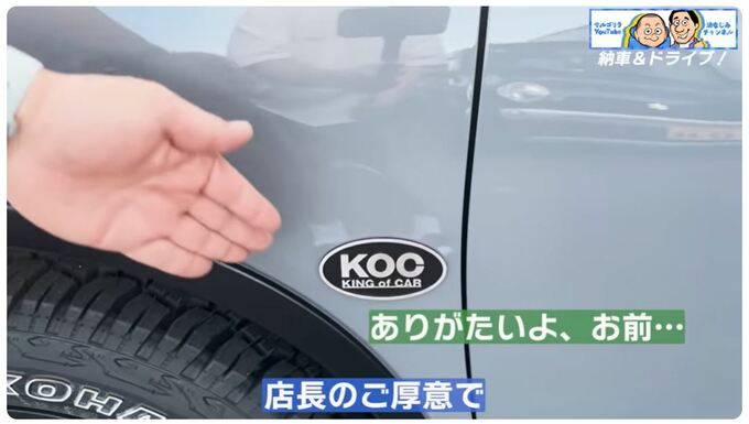 また、購入した店舗の店長さんのご厚意で「KOC KING of CAR」と書かれたオリジナルエンブレムも車体に装着。