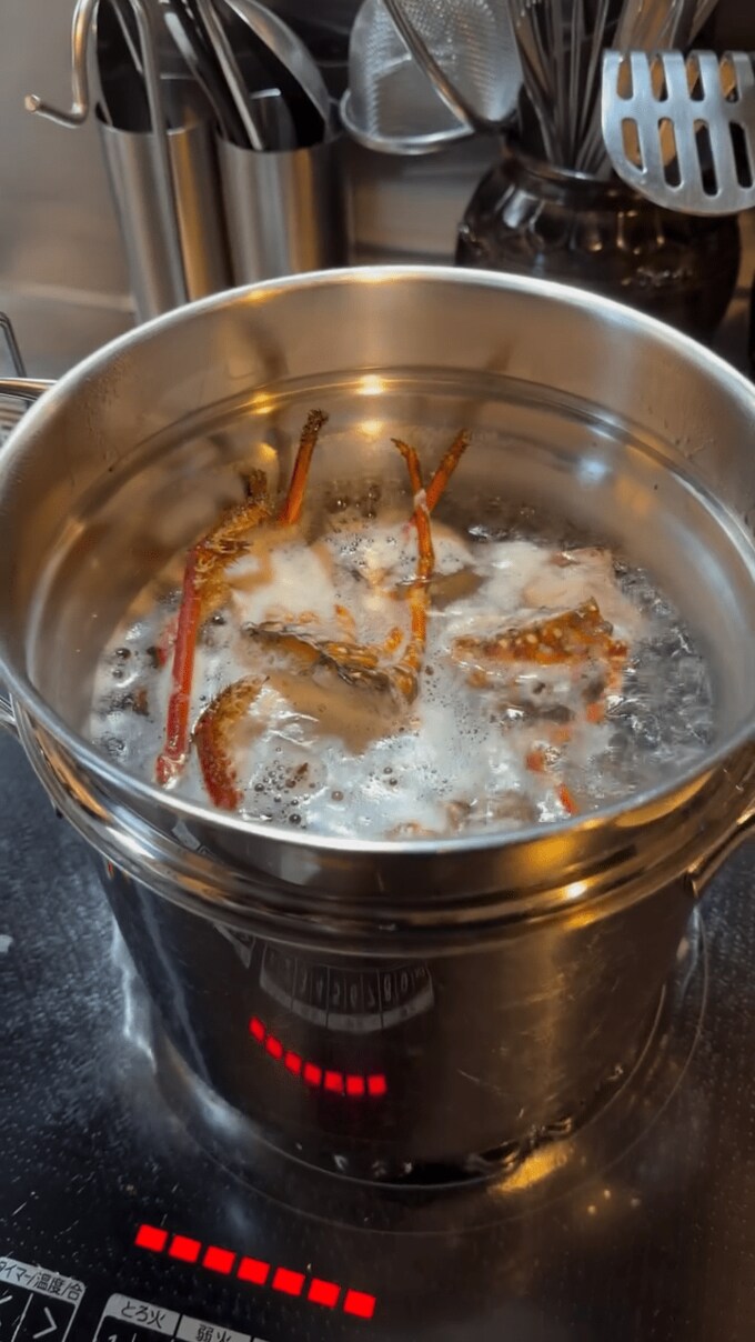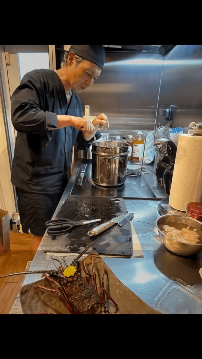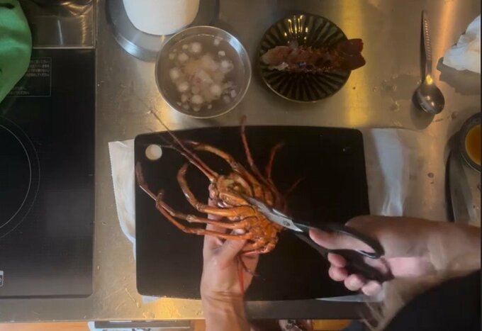 つるのさんは「江の島の伊勢海老が解禁とのことで、江ノ島内の料亭#丸だい仙水さんから立派な江の島伊勢海老を頂きました♪」と書き出し、調理の様子を動画で掲載。