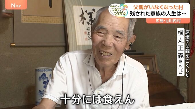 広島市安佐南区川内に住む横丸正義さん(94)。原爆で父の正留さんを亡くしました。