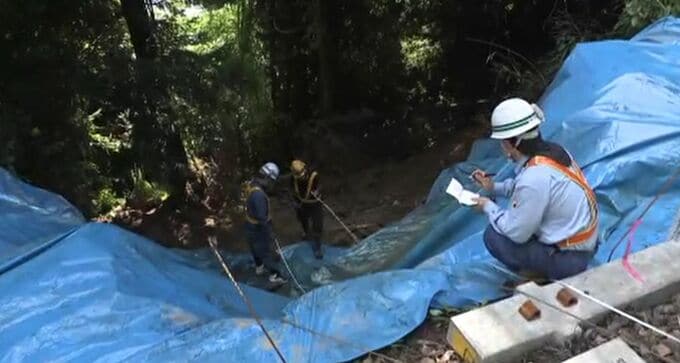 のと鉄道によりますと、12日午後3時ごろ、巡回中の社員が能登鹿島駅と穴水駅の間で縦横およそ8メートルにわたって線路沿いの斜面が崩れているのを見つけました。