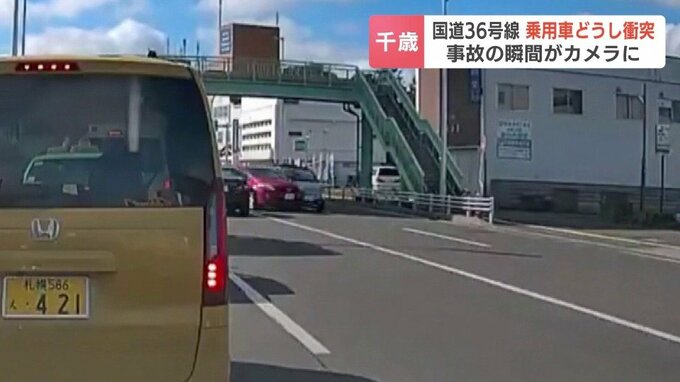 13日朝、北海道千歳市の国道36号線で、乗用車どうしが衝突し、1人が軽いけがをしました。