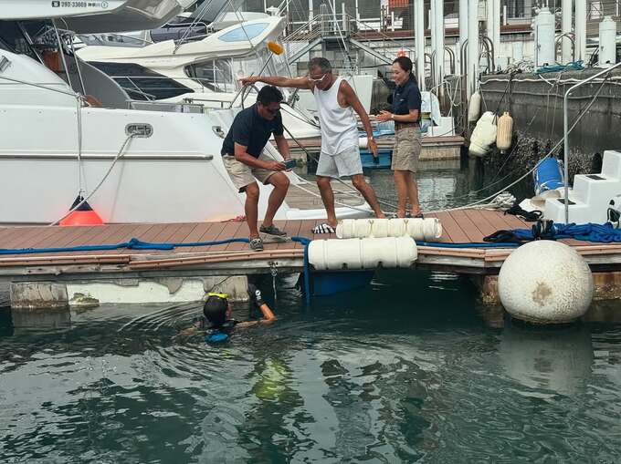 落としたスマホは「@riviera_zushi_marina のダイバーさんが探しまくってやっと発見!!! 本当にありがとうございました」と無事救出されたそうで、高嶋さんは「感動の一部始終をご覧ください」と、落としたiPhoneの捜索に奔走するダイビングショップスタッフの奮闘ぶりを写真で紹介しました。