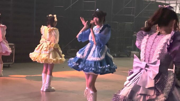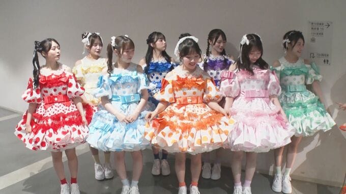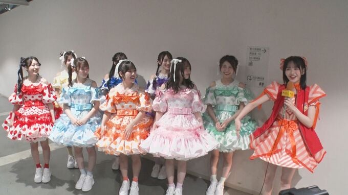 ほかのグループとの違いは、このスカートのボリューム感だそうで、川本笑瑠さんが「(スカートの)下に履くフリフリのスカートをきゅーすとは2枚縫い付けて履いているので」と語ると、鎮西さんは「うちら車幅って言うんだよね。幅が広いことを車幅って言うんですけど、車幅はダントツであるよね」と、納得の表情。