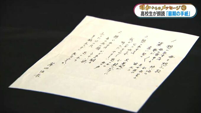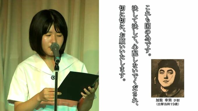 (鹿児島玉龍高校1年 畠中日和子さん・朗読)「これも国の為です。決して決して心配しないでくだされ、切に切に、お願いいたします」