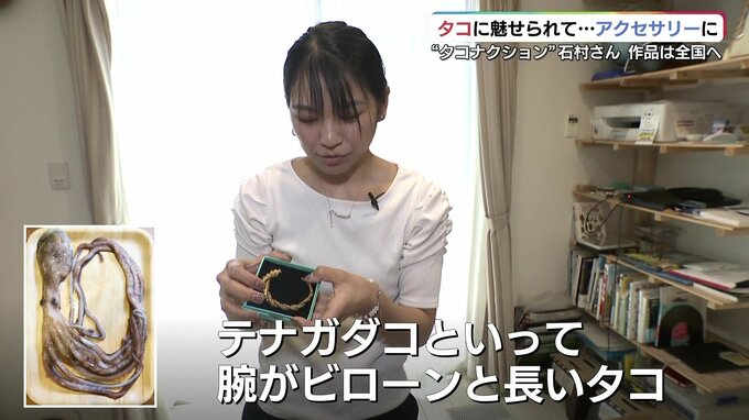 「テナガダコといって、腕がビローンって長いタコです。そのタコの腕を2本ネジネジしてバングルにしました」
