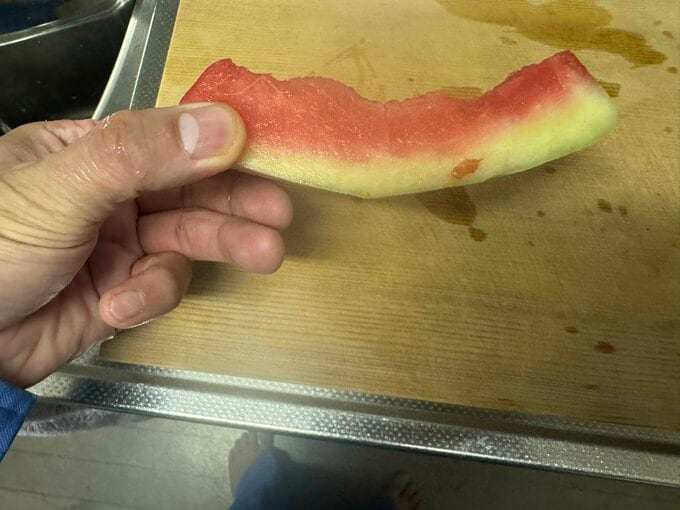 滝沢秀一さんは、「スイカの白いところは食べられます。シトルリンが多く含まれていて、栄養満点」と投稿。