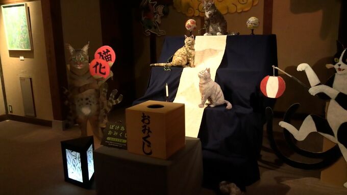 岡山県真庭市で「化け猫」をテーマにした展覧会が開かれています。愛嬌たっぷりの「化け猫」たちが会場を彩ります。