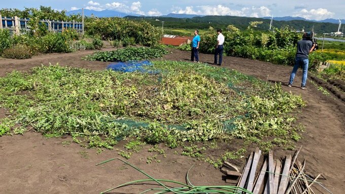 14日早朝、北海道江差町の家庭菜園でスイカ15個がクマに食い荒らされる被害がありました。