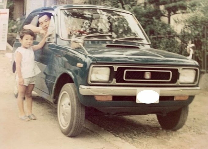 投稿された画像では、「三菱ミニカ」の側に佇む、幼い頃の山口智充さん、運転席から顔を出す山口さんの父の姿が見て取れます。