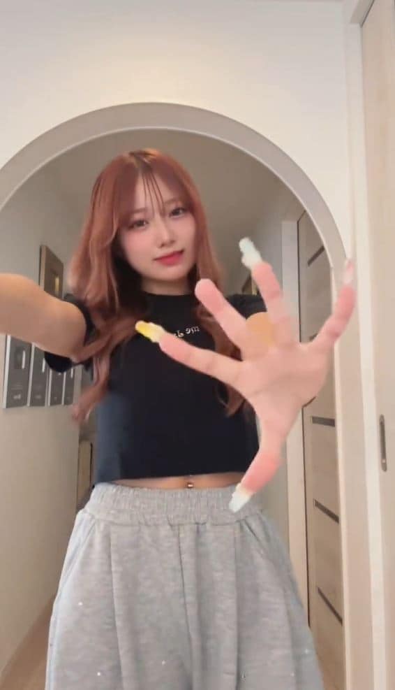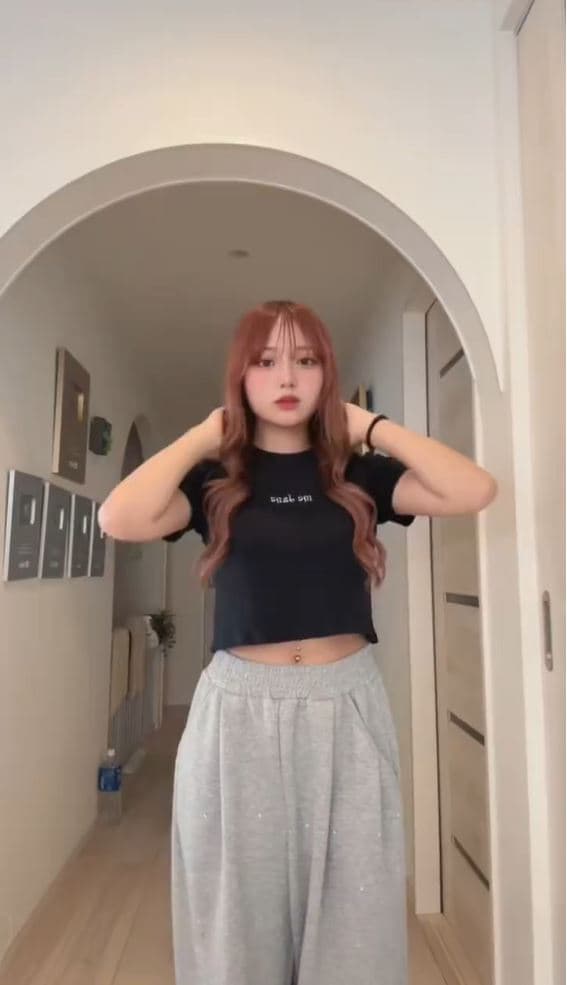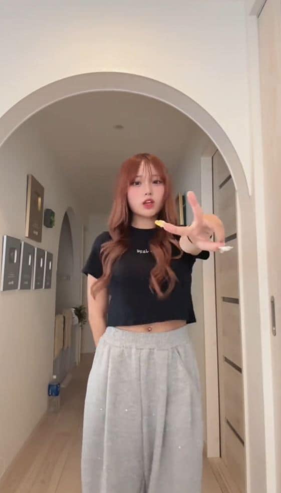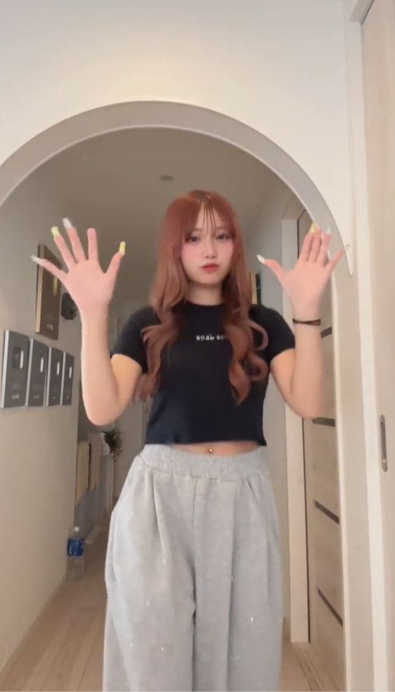 動画には、ピンクがかった茶髪の希空さんが、黒のクロップド丈Tシャツと灰色のスェットパンツというシンプルながらスタイリッシュな部屋着姿で登場。希空さんが屋内でダンスを踊る様子が映し出されています。