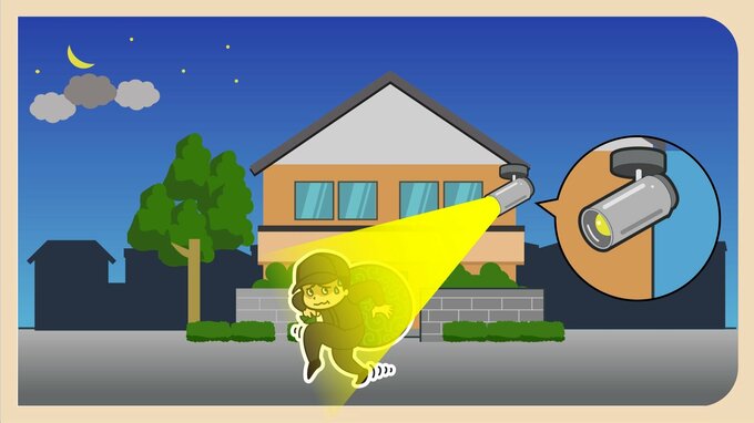 「攻める防犯、こちらからも何かアクションして追い出すということも必要。明るく照らすということも一つなんですけど、ライトを少し明るく照らす、玄関灯をつけるとかじゃなく、センサーライトでも300ルーメン以上、自転車のライトぐらいですね、それ以上の明るさで明らかに攻撃的に照らして威嚇するということも必要です」