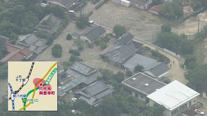 被害が大きい地域の一つが、八代市興善寺町です。集落の広い範囲に土砂が流れ込んでいました。