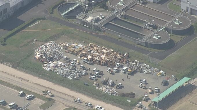 記者「災害廃棄物が集められているのでしょうか。多くのがれきや家電のようなものも見られます」