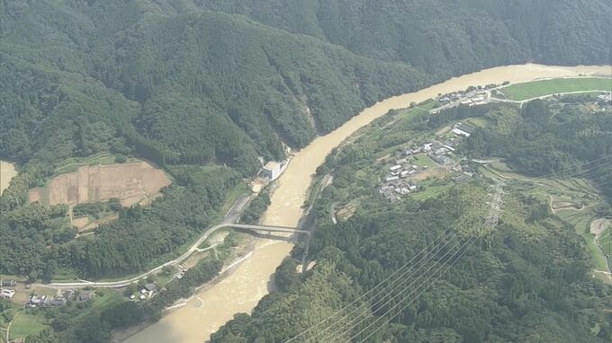 8月13日にヘリコプターから撮影した、熊本県内の大雨の被災状況です。被害は深刻で、広い範囲に及んでいます。