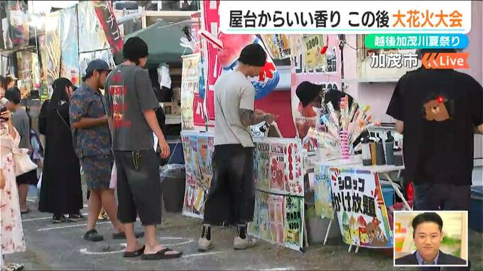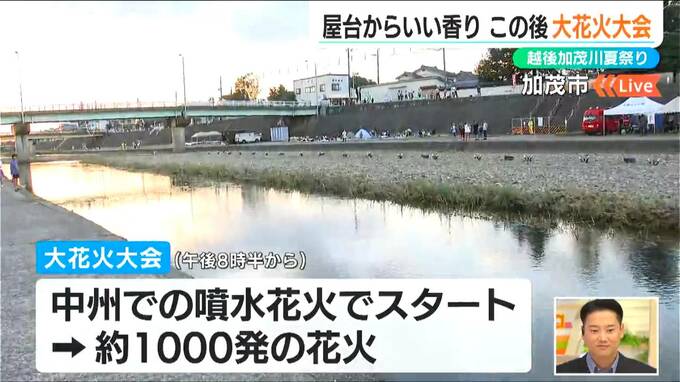 新潟県加茂市を流れる加茂川の河川敷で開かれている『越後加茂川夏祭り』。