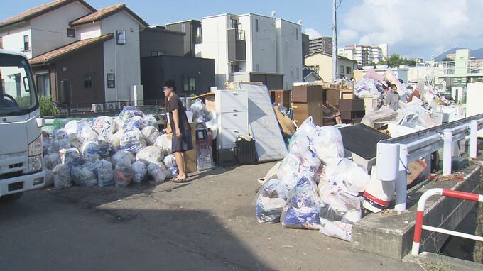 熊本市を流れる坪井川と井芹川の周辺で浸水被害が相次いだため、ごみ収集場は災害廃棄物であふれ返っています。