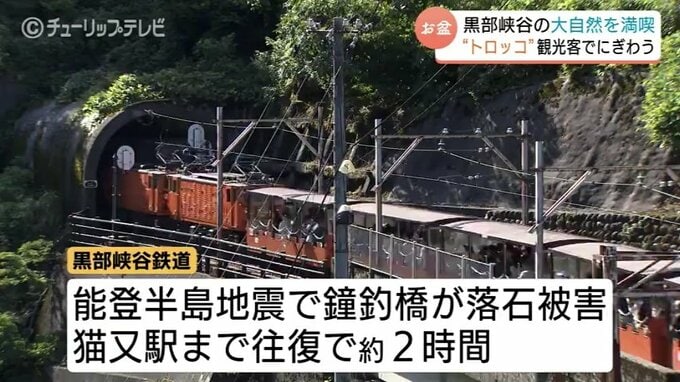 夏休みを迎え、トロッコ電車で知られる黒部峡谷鉄道は多くの観光客で賑わっています。能登半島地震の影響で現在は「猫又駅」までの折り返し運転ですが、乗客は車窓からの絶景や特別な終点での散策を満喫。SNSをきっかけに訪れる人も多く、富山を代表する観光地は活気にあふれています。