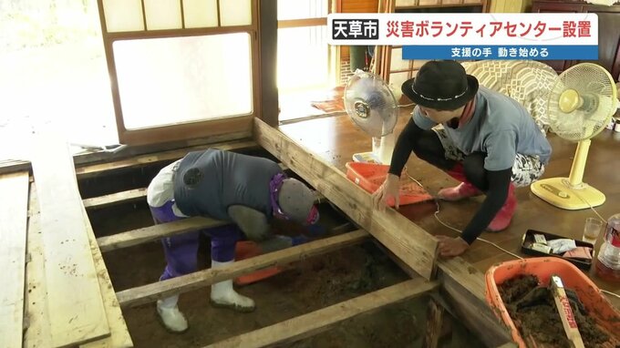 今日(14日)午後3時時点で127戸が床上浸水、593戸が床下浸水の被害を受けた天草市は今朝、災害ボランティアセンターを設置しました。