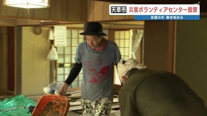 熊本県天草市では、被災した人たちを助けようと、災害ボランティアが活動を始めています。