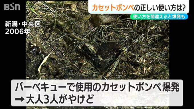 新潟県内では2006年、新潟市の海浜公園でバーベキューに使っていたカセットボンベが爆発。おとな3人がやけどを負いました。現場にあった2本のボンベうち、1本からガスが漏れていたことが原因とみられていました。