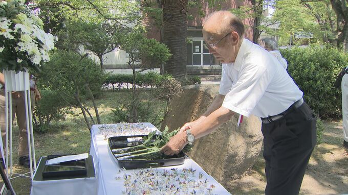 また、山口市の中村学園高校でも光市の海軍工しょうへの空襲で犠牲になった生徒を悼み、慰霊碑に祈りがささげられました。
