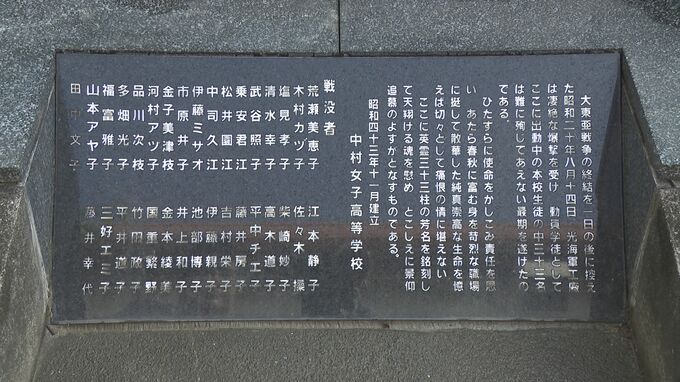 終戦の前日である80年前の1945年8月14日、当時の中村高等女学校の生徒は学徒動員先の光市にある海軍工しょうで空襲に遭い33人が犠牲となりました。