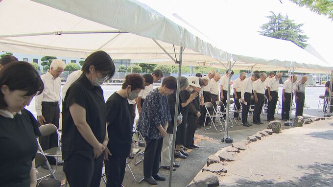 遺族らおよそ50人が集まり空襲があったとされる午後0時20分に合わせ、黙とうをささげました。