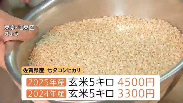 気になる価格は、佐賀県産のコシヒカリの玄米が5キロで4500円。2024年は3300円だったので、約1.4倍になっています。