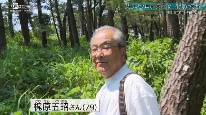 小関さんが訪ねたのは、戦死した搭乗員の遺族・梶原五昭(かじはらいつあき)さん。五昭さんとともに、旧海軍の航空基地の跡地にある慰霊碑を見ると…