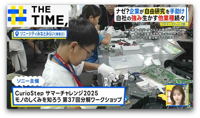 これは電機メーカー『ソニー』が主催する「CurioStep サマーチャレンジ2025 モノのしくみを知ろう 第37回分解ワークショップ」(※応募終了)で、自社製品を分解して中の仕組みを学んでもらおうというものです。