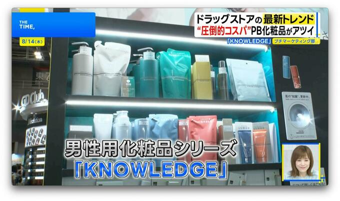 さらに『マツキヨ・ココカラファイン』のブースでは、並んでいる全てがPB商品。中でも注目なのは、男性用化粧品シリーズ「KNOWLEDGE(ナレッジ)」。