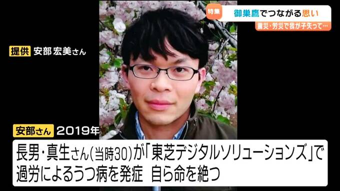 安部さんの長男・真生(しんは)さんは、東芝の子会社「東芝」で、システムエンジニアとして働いていた2019年に、過労によるうつ病を発症。自宅マンションから飛び降りました。