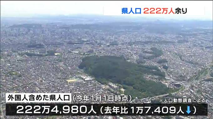 総務省が、8月6日に公表した住民基本台帳に基づく人口動態調査によりますと、2025年1月1日時点での外国人を含めた宮城県の人口は222万4980人で、2024年に比べ1万7409人減りました。