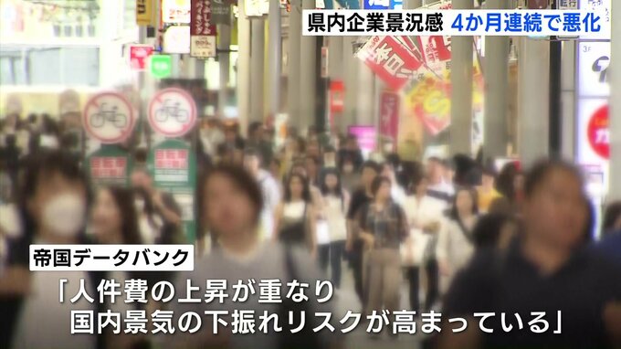 7月の県内企業の景況感が前の同じ年に比べて4か月連続で悪化したことが民間の調査会社の調べでわかりました。