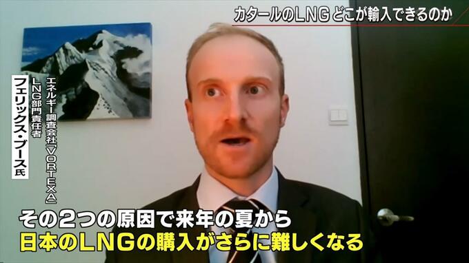 更に今までヨーロッパは、パイプラインで天然ガスをロシアから輸入していたため、LNGの施設なども充実しておらず、限られた量しか買えなかったが、今後はロシア産を買うわけにもいかず、施設を作っているため、カタールからの輸入は増える。また、中国は来年以降も買い手になる。そのため日本のLNG購入は来年以降更に厳しくなるとブース氏は言う。