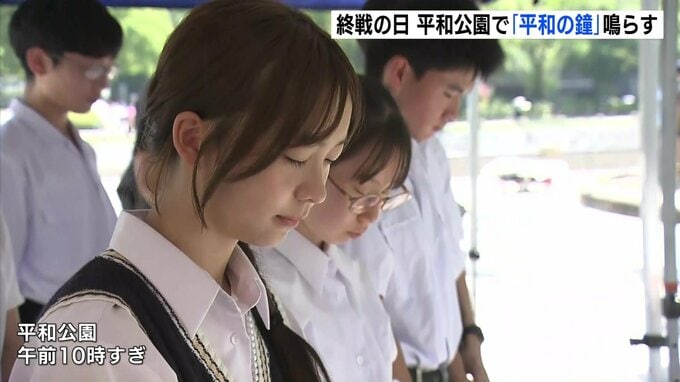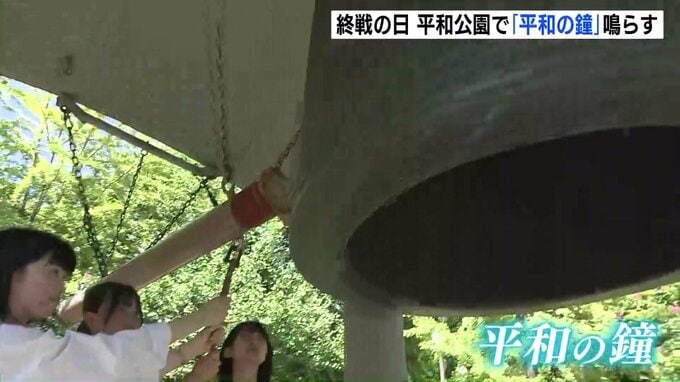 戦争や核兵器のない平和な世界の実現に向けた決意などを発表しました。参加者たちは、戦争や原爆で亡くなった人たちを慰霊するため、平和の鐘を鳴り響かせました。